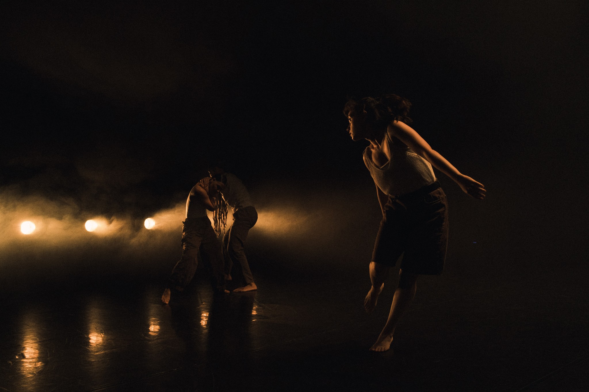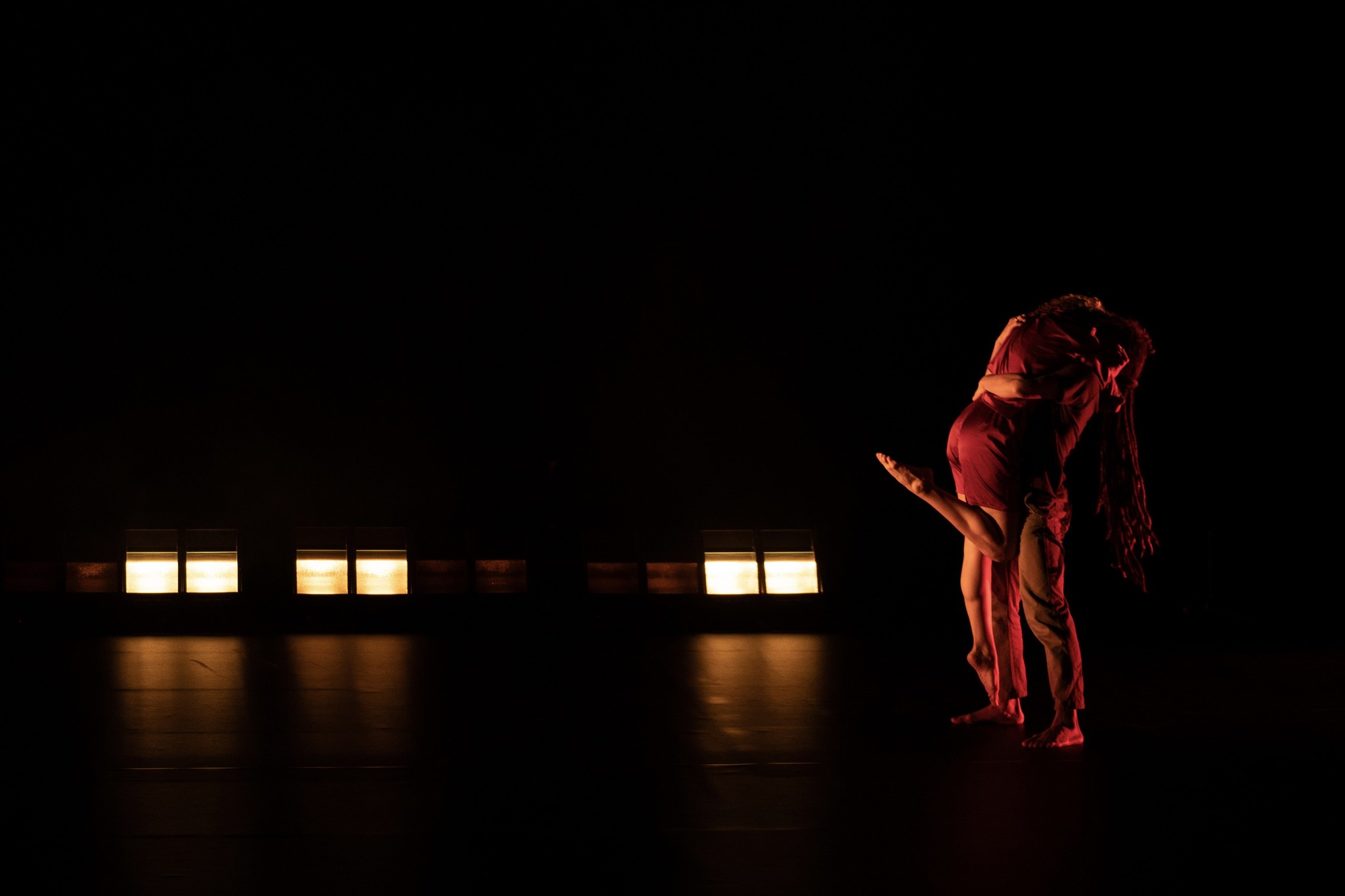 não é amor is a dance piece that aims to address the issue of gender violence by reflecting on the fine line between passion and violence. The aim is to explore the body as an accumulator of memories, creating space to (re)write the dramaturgy of the body and the possibility of (re)inventing its cartography. Regular laboratory sessions with women living in shelters were promoted by a partnership with the Portuguese Victim Support Association (APAV) and Gender Equality Commission (CIG).